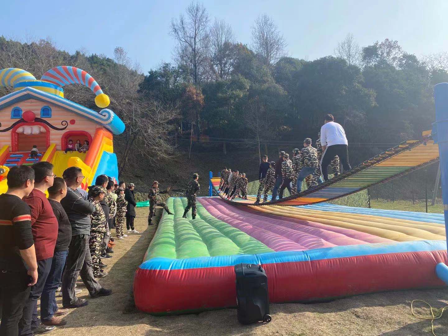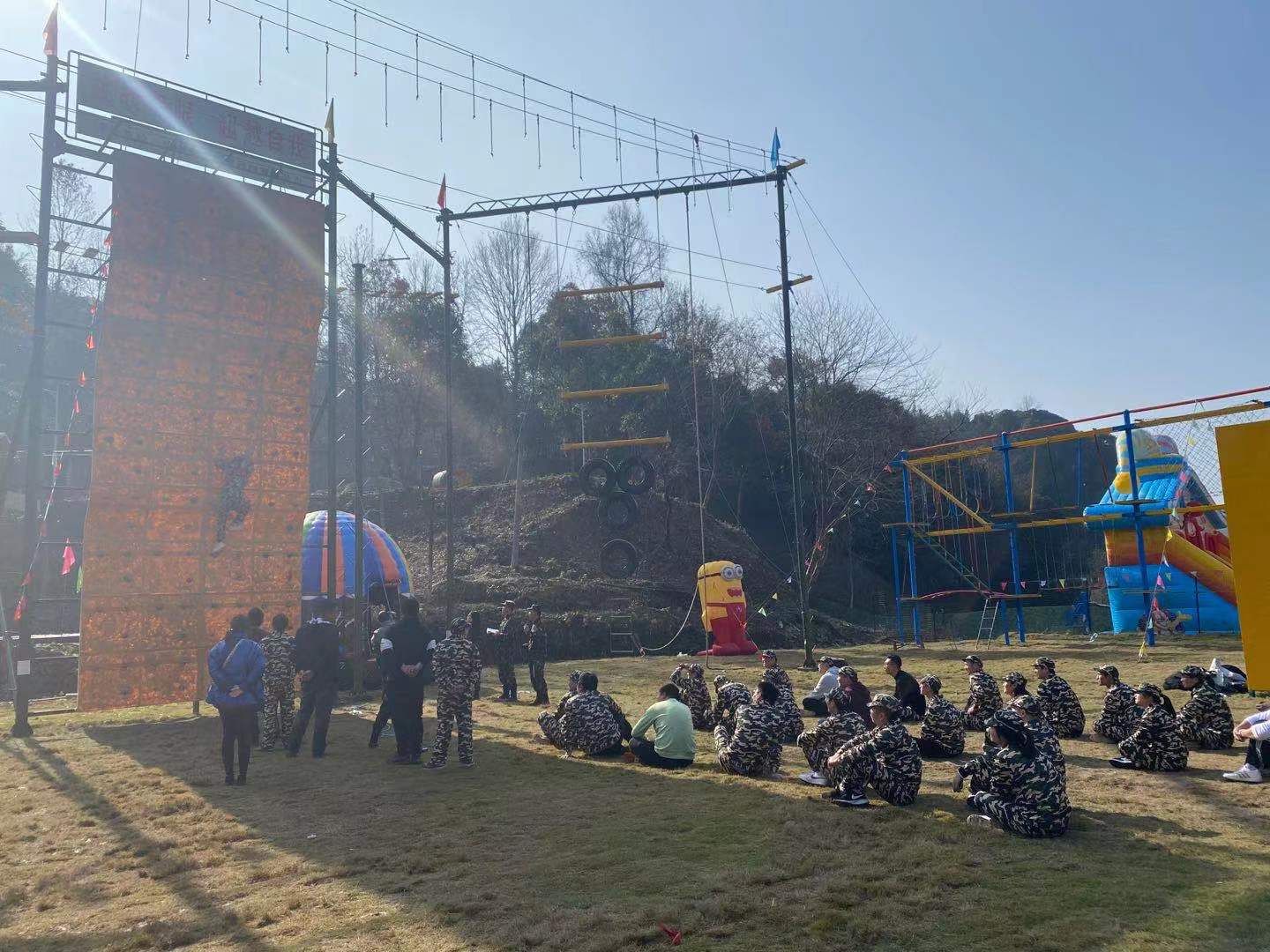 活動(dòng)現(xiàn)場(chǎng),青年骨干們進(jìn)行簡(jiǎn)單的熱身運(yùn)動(dòng)后,隨即分成4組進(jìn)入了比賽流程?!皟扇巳恪薄ⅰ皳u擺橋”、“攀巖”“拔河”等項(xiàng)目依次進(jìn)行。豐富的素質(zhì)拓展項(xiàng)目,既是對(duì)學(xué)員們體力、耐力、意志力的挑戰(zhàn),更是對(duì)團(tuán)隊(duì)配合的考驗(yàn)。各隊(duì)學(xué)員在教官的指導(dǎo)下,不斷挑戰(zhàn)自我、分工協(xié)作,機(jī)智靈活地完成了各項(xiàng)訓(xùn)練項(xiàng)目。